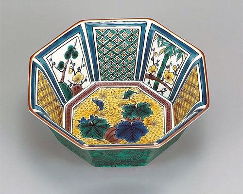 明治時代に入ってからは、九谷庄三(くたに・しょうざ)の彩色金襴手が有名となり、大量の九谷焼が海外へ輸出されました。今日の九谷焼は、各時代の窯の上絵付けの作風を源流に、以前にも増して活発な生産が続けられています。