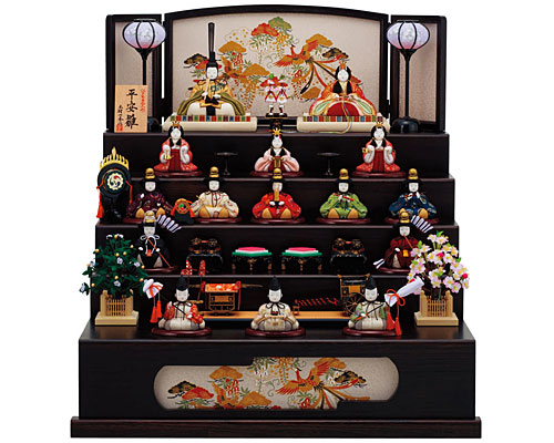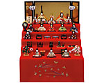 顔の表情、華やかな衣装をはじめ、道具にいたるまで妥協を一切許さず平安の美と良き日本の風習を伝える七段飾り。衣装の美しさと艶やかな雰囲気つくりが素晴らしい、日本の伝統工芸美の粋とも言えます。