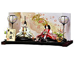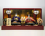 優美華麗なひな人形を象徴するのが、お飾りとして最も段数の多い十五人揃えの七段飾りですが、今日の住まいに応じて最上段の親王様だけをお飾りする「親王飾」が生まれました。